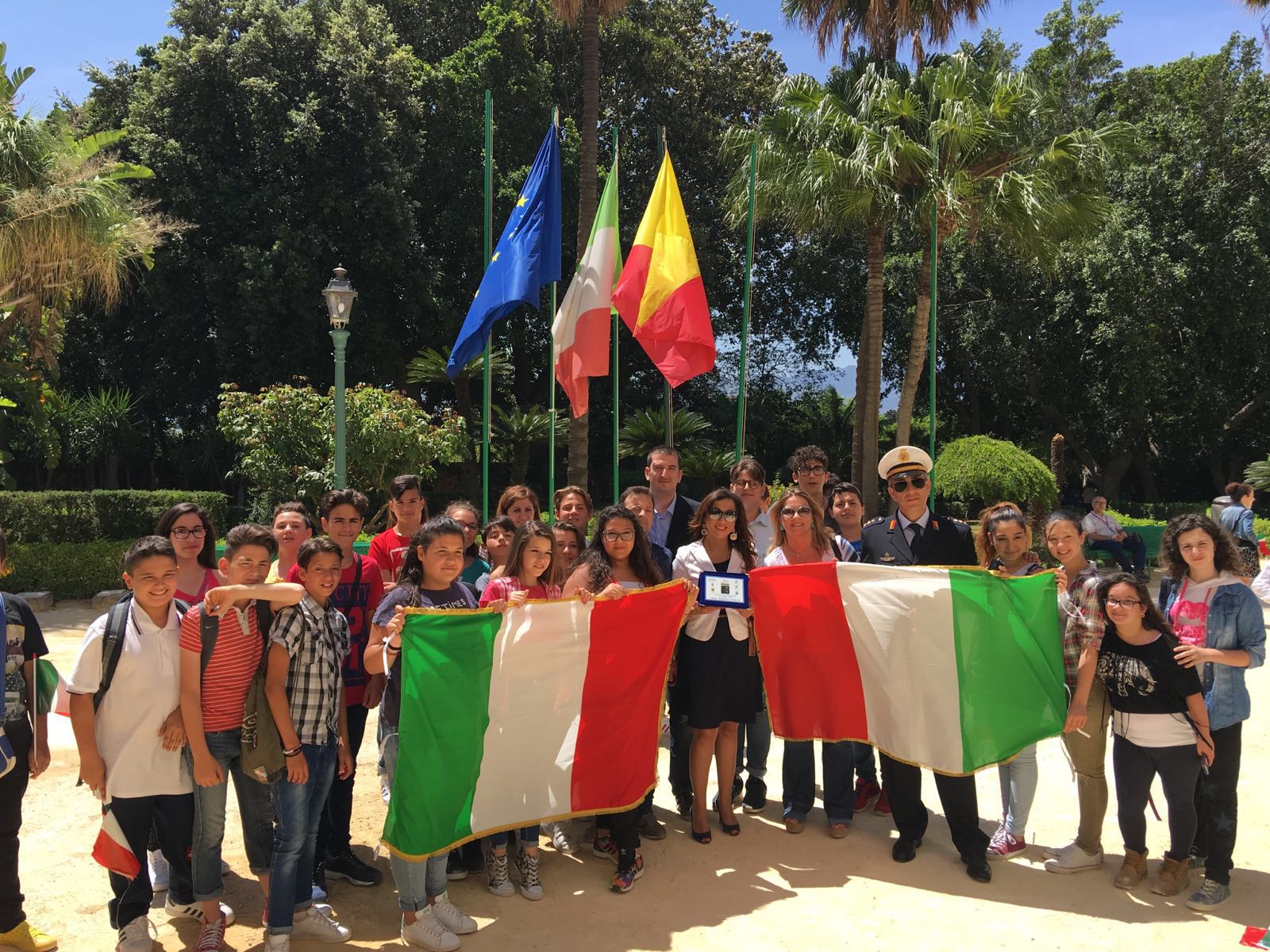 Questa mattina a Villa Niscemi ha avuto corso la premiazione del progetto Tricolore Vivo di cui Ficarazzi ne era il detentore per l’anno 2016. A presenziare la manifestazione il Sindaco di Palermo Leoluca Orlando che ha presentato gli istituti partecipanti al Premio per l’anno 2016. A rappresentare l’amministrazione Comunale di Ficarazzi, l’Assessore Maria Grazia Pillitteri unitamente al Comandante della Polizia Municipale Filippo Oliveri e gli Agenti Lo Verso e Di Verde. Presenti tra gli altri anche Patrizio Cinque Sindaco di Bagheria. Il premio Tricolore Vivo 2016 è andato all’istituto comprensivo di Campobello di Mazzara. A consegnare il Tricolore Vivo 2016 proprio l’Assessore Maria Grazia Pillitteri in quanto Ficarazzi ne era il detentore per lo scorso anno e lo ha custodito fino ad oggi. L’intervento dell’Assessore Maria Grazia Pillitteri durante il passaggio del premio è stato incentrato sui diritti inviolabili dell’uomo contenuti nell’art. 2 della costituzione.