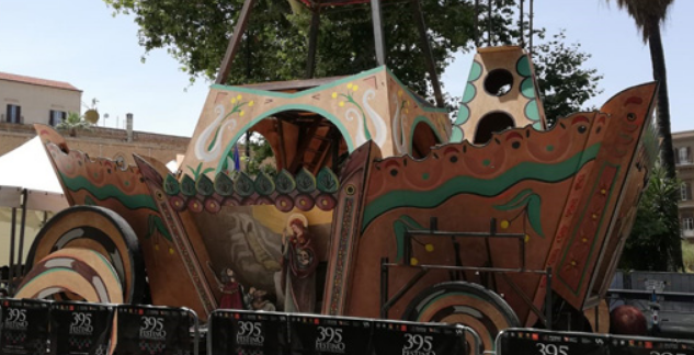 Il carro trionfale quest’anno è stato ideato dallo scenografo Fabrizio Lupo e realizzato, per la prima volta nella storia, all’interno della Casa di Reclusione Ucciardone, in collaborazione con le maestranze dell’organizzazione VM Agency Group, i detenuti e gli allievi dell’Accademia delle Belle Arti di Palermo, con il coordinamento della tutor Alessia D’Amico.