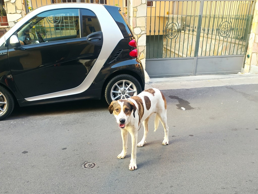 Dopo la nostra segnalazione qualcosa è successo. Diverse le associazioni animaliste è di volontari che si sono mobilitati per rintracciare sia il cane, che ha fatto perdere le sue tracce, sia il Signore che dopo averlo picchiato lo ha abbandonato. Indagini in corso della Polizia Municipale che chiede la collaborazione dei concittadini che sanno qualcosa garantendo l’anonimato.